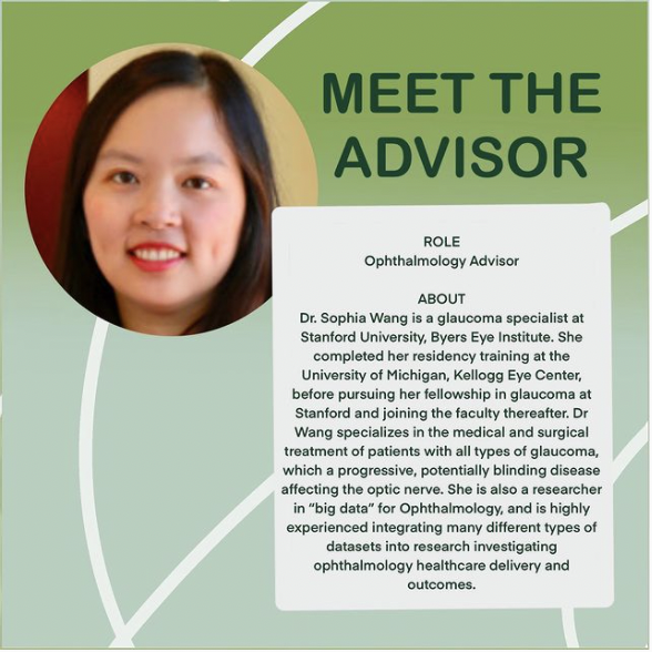 Dr. Sophia Wang is a glaucoma specialist at Stanford University, Byers Eye Institute. She completed her residency training at the University of Michigan, Kellogg Eye Center, before pursuing her fellowship in glaucoma at Stanford and joining the faculty thereafter. Dr Wang specializes in the medical and surgical treatment of patients with all types of glaucoma, which a progressive, potentially blinding disease affecting the optic nerve. She is also a researcher in “big data” for Ophthalmology, and is highly experienced integrating many different types of datasets into research investigating ophthalmology healthcare delivery and outcomes.